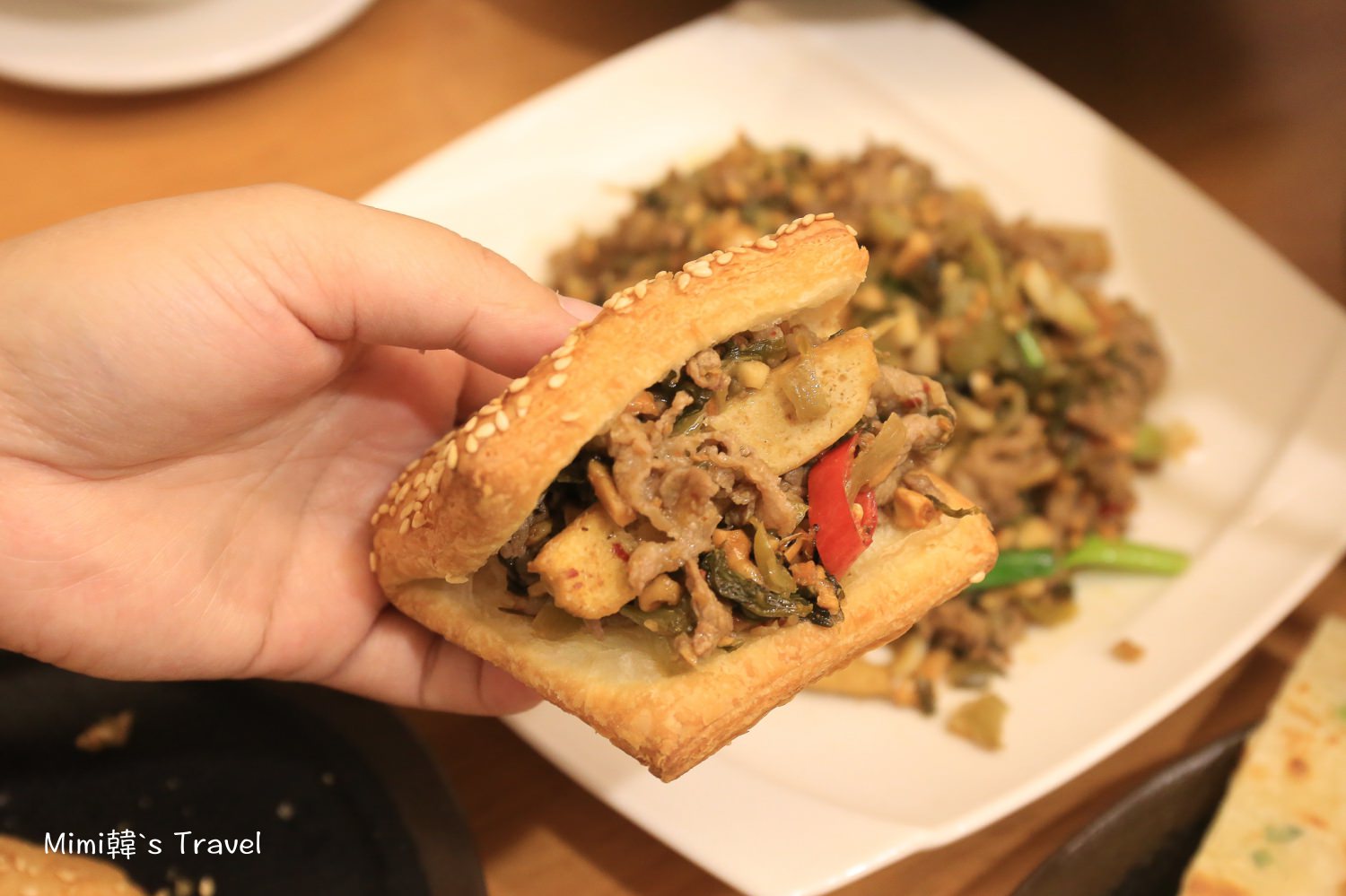 雲貴炒肉片+酥餅:這款就屬於比較重口味,帶著微辣的炒肉片還滿好吃,而剛烤好的酥皮就像是台版的千層派,兩種口感相得益彰,建議剛端上桌就趕緊趁熱吃掉,放冷了會有點油膩感。