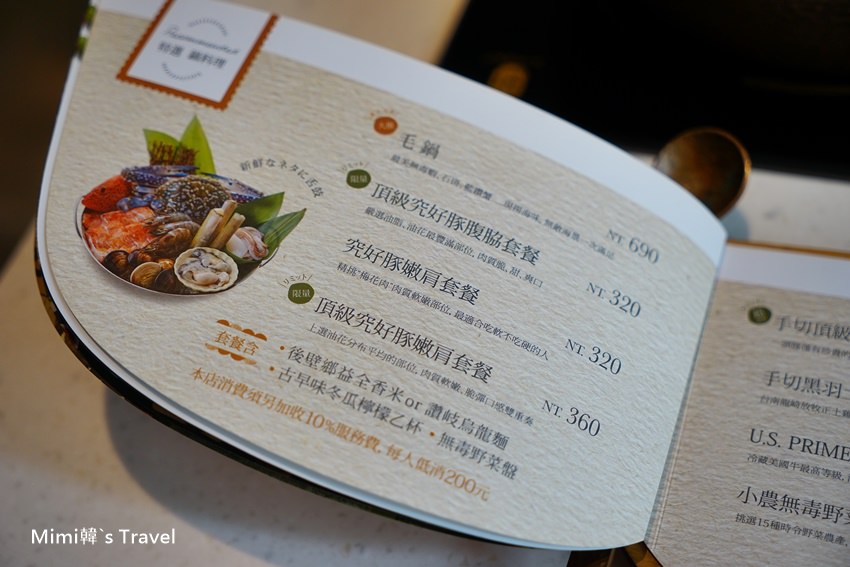 我們點了毛鍋($690)、頂級究好豚嫩肩($360)