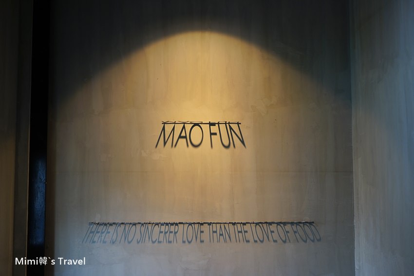 隨著階梯走上二樓,MAO FUN(毛房)隨著光影投射在灰白的水泥牆面上,兩幢老建築的痕跡被適當的保留下來,可能大客廳多放了幾張桌椅,而原本的小房間卻又成了像是包廂的存在,是個讓人從視覺到味覺都不會無聊的地方。