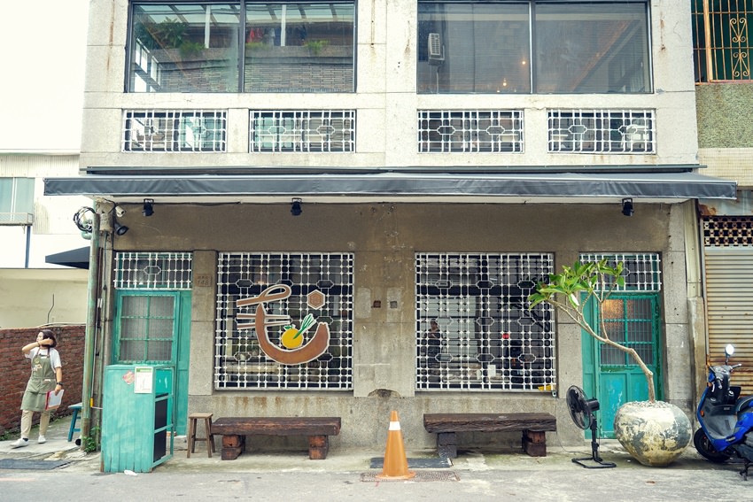 毛房蔥柚鍋位於台南府東街、慶東街路口,利用兩幢連棟的老房改建完成,外觀保留了許多老屋充滿歷史感的元素,無論是門板、鐵窗花,就連洗石子牆面都顯得相當美呀~