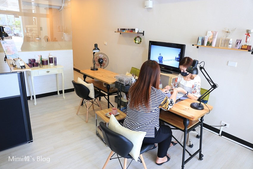 很喜歡她這家新店的明亮採光,而且環境感覺很輕鬆舒服,目前店裡共有4位美甲美容師,除了有美甲之外,另外還設有美睫、美體SPA、除毛等服務。