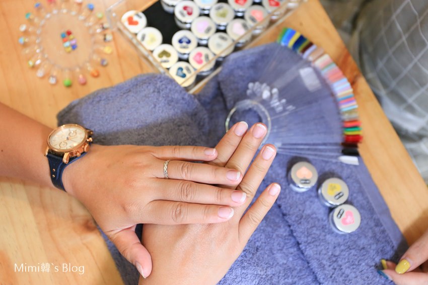 FiFi先幫我卸掉原本舊的指甲彩繪,接著開始重新把指甲給修好,從指甲修型→甘皮修整→指面護理→甲面拋光,每個步驟都很細心,使用專業器具讓整個過程感覺很順暢。