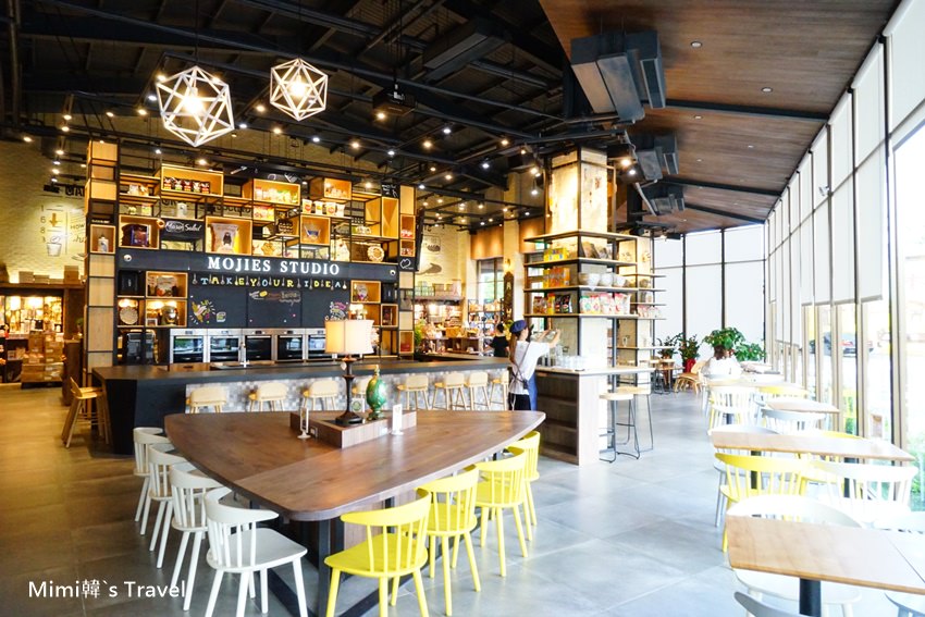 台中軍功路上這間 摩吉斯烘焙樂園 Mojies Baking Land 滿特別,店家把烘焙用品賣場,與早午餐咖啡、甜點下午茶結合,讓大家來用餐的時候還可以順道逛逛烘焙工具(倒過來也行啦),還可以帶孩子來參加烘焙教室,而且空間超大又不限時間,我們這天原本是想來去大坑紙箱王吃晚餐,想說時間還早,再加上Mojies 摩吉斯烘焙樂園就位於台中北屯區,離大坑紙箱王也不遠,就順道過來瞧瞧,雖然我覺得商品不太便宜,但整體是挺不賴的地方呢 😆