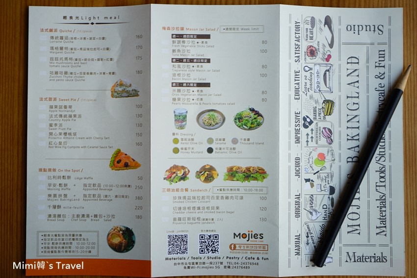 摩吉斯烘焙樂園 Mojies Baking Land 在台中軍功路一段的全聯附近,是一間以「烘焙」為主題的複合式餐廳,店裡可以玩親子烘焙DIY(需三天前預約),還有賣很多烘焙工具,另外她還是一間漂亮的咖啡廳,提供甜點下午茶、輕食等選擇。另外這附近距離台中大坑、新社都不遠,可以把它放進來台中旅遊的行程中。