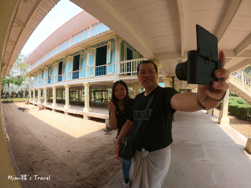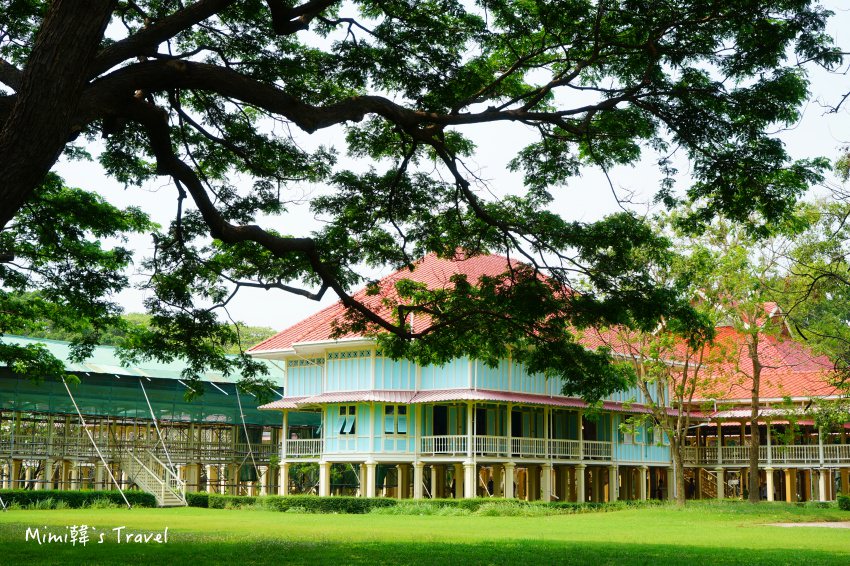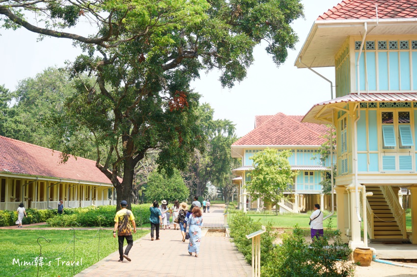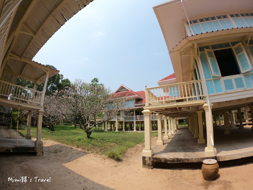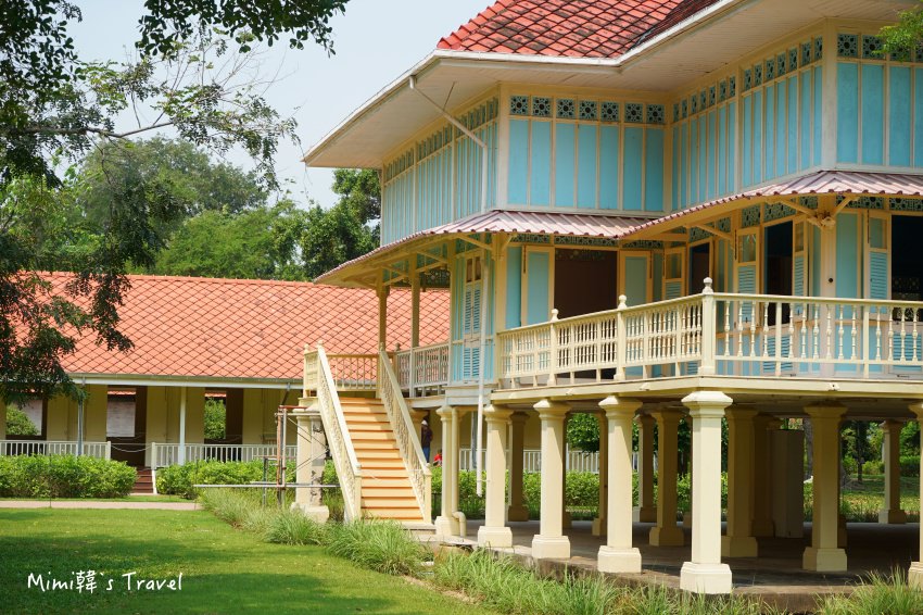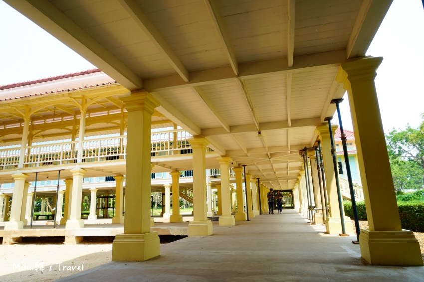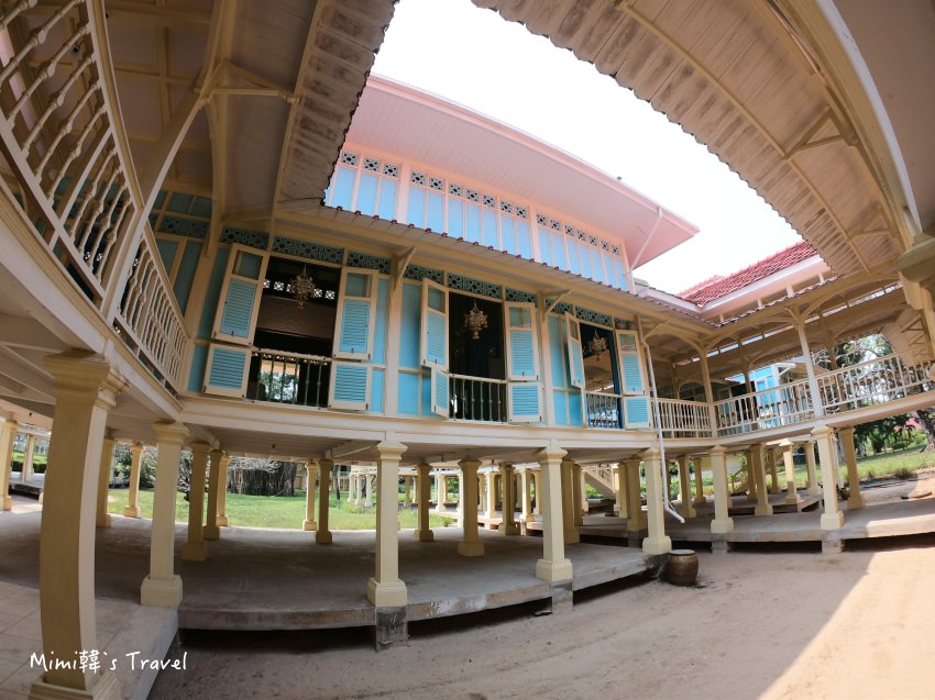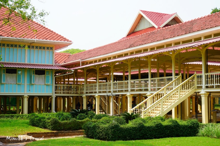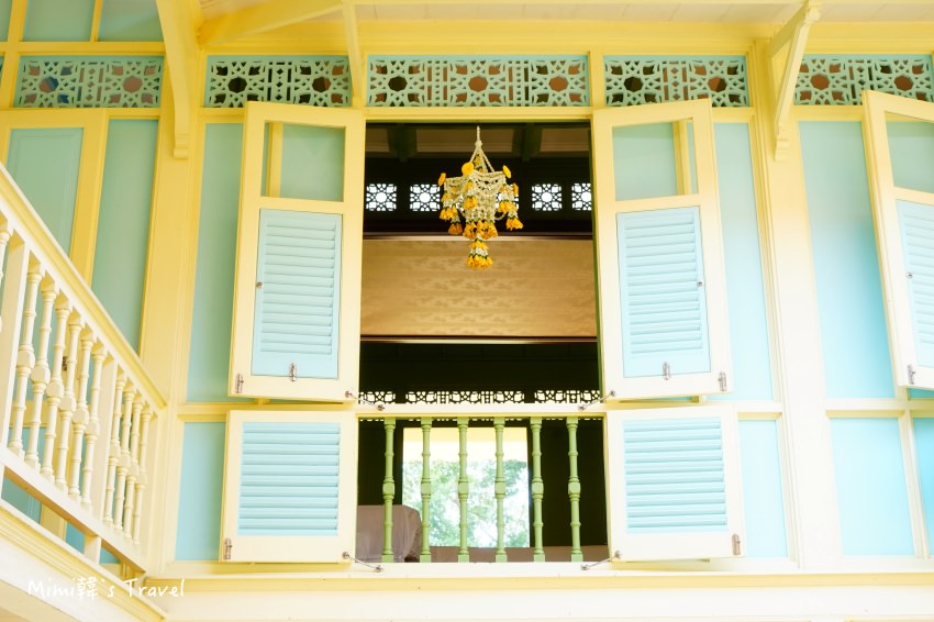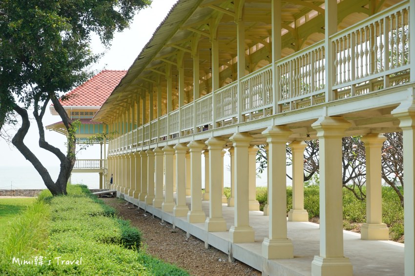 至於建築的部分,全宮殿都是使用上等泰國柚木建造的高腳屋風格,所有的建築之間都有長廊來連接,可以一路逛到海邊,裡面包還皇家起居室、書房、客廳⋯等,顏色以是Tiffany藍、鵝黃色與紅屋瓦互相搭配,與我們印象中泰國宮殿完全不同的感覺。
