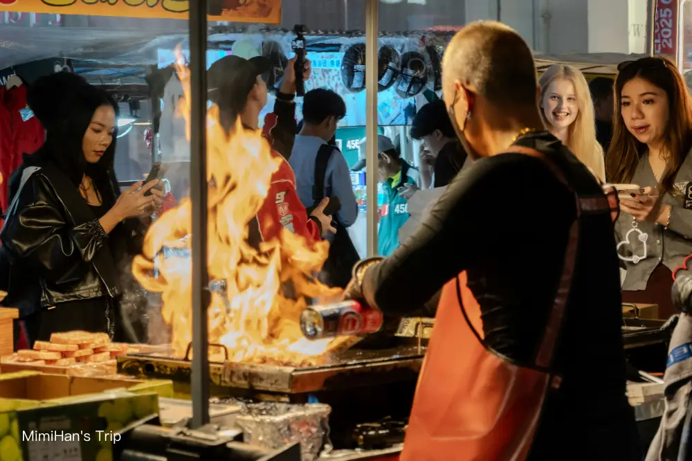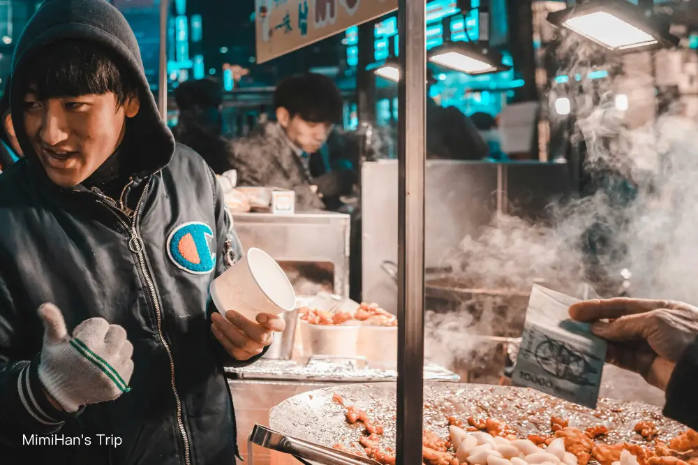 雖然這樣說可能破壞你對首爾夜市的期待,但明洞的街邊小吃真的就是專宰觀光客,一串普通的烤肉或是一份烤起司,價格甚至可以讓你在別區吃一頓平價正餐。明洞餃子的泡菜雖然好吃,但吃完真的不能馬上跟別人講話。我覺得街邊小吃買個一兩樣體驗一下氛圍就好,真的要吃飽,還是走進明洞巷弄裡的湯飯館或是連鎖餐廳會划算非常多,把預算留給買衣服跟保養品才是正解。