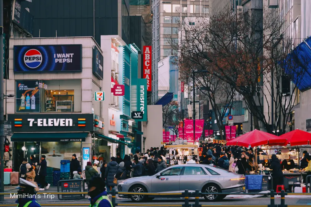 踏出明洞地鐵站的那一刻,首爾的繁華與擁擠會瞬間把你包圍。現在來首爾自由行,明洞感覺進化得比疫情前更好買、更好逛。街道上滿滿都是提著巨大購物袋的女孩們,空氣中混合著街邊小吃的烤肉香氣與美妝店飄出的香氛味。