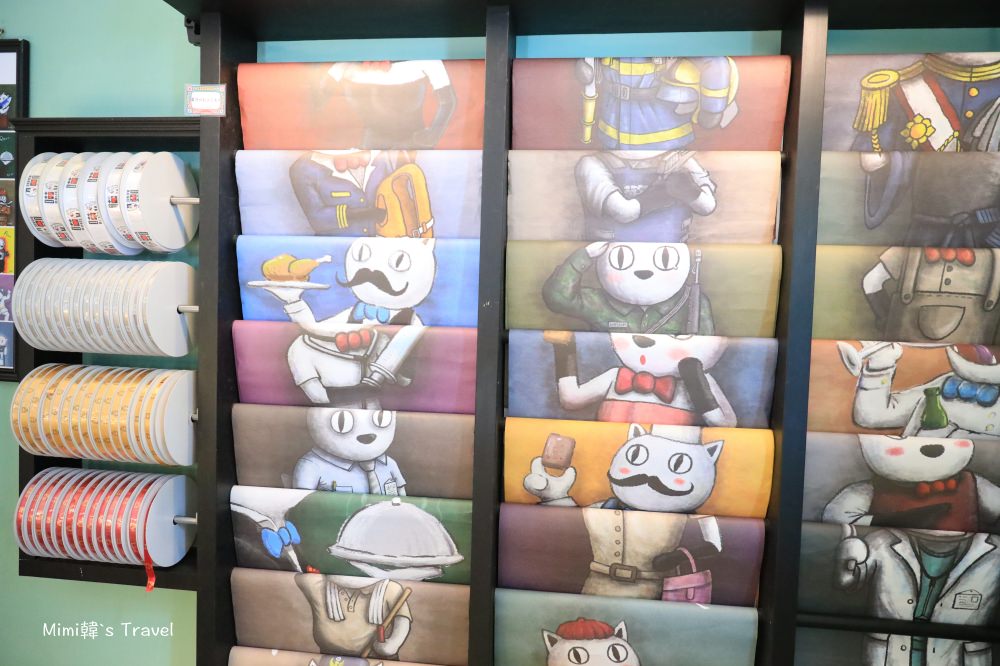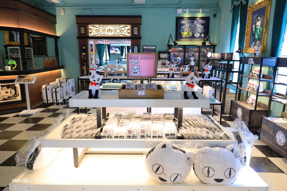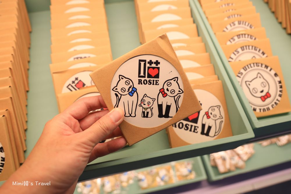 商店裡有很多蘿西家族的周邊商品,鑰匙圈、杯墊、抱枕、公仔⋯連行李箱和包裝紙都有,我是覺得從主題發想、景點規劃到周邊產品的設計都是相當用心,並不會讓人有那種:蛤?就這樣喔?的感覺,而且雖然同樣是妖怪村團隊,但各種商品也是有所區隔沒有重複。