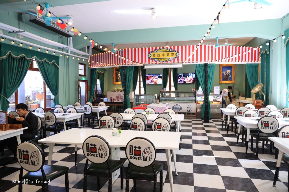 一樓的蘿西冰果室,裡頭可以點多款雪花冰、四果冰、冰淇淋,佈置也很特別。