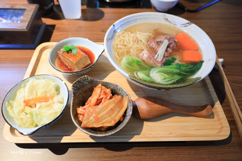 老公點的清燉牛肉麵,湯頭清爽順口、麵條吃起來帶點脆度蠻特別,而旁邊搭配了三款小菜。