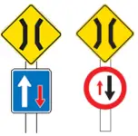 單線橋樑:是紐西蘭比較特殊的交通號誌,在經過橋之前,如果看到紅色圓框+小箭頭,就代表你的方向必須停下及讓路給對向車,直到對向無來車之後才可繼續往前行駛。反之是藍色就是對面要禮讓你。 |