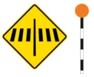 紐西蘭有很多沒紅綠燈的斑馬線,看到這標誌就是減速,有行人就務必禮讓,沒人則可以直接通行。 |