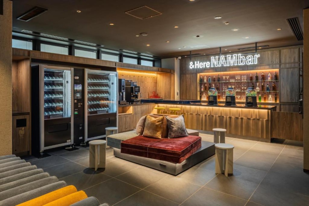 & Here OSAKA NAMBA「這裡飯店」以輕工業風結合木質元素,營造溫暖又帶點現代感的住宿氛圍。客房空間寬敞明亮,即使是帶著小朋友的親子家庭,也能輕鬆打開多件行李而不覺擁擠。每間房都配有開放式廚房與洗衣設備,對長住旅客與家庭客群特別友好。公共空間設計成共享交誼廳,讓旅客有機會交流旅行心得。地點位於大阪難波最熱鬧的千日前商圈,步行即可抵達道頓堀、黑門市場與日本橋電電街,生活機能極佳。
