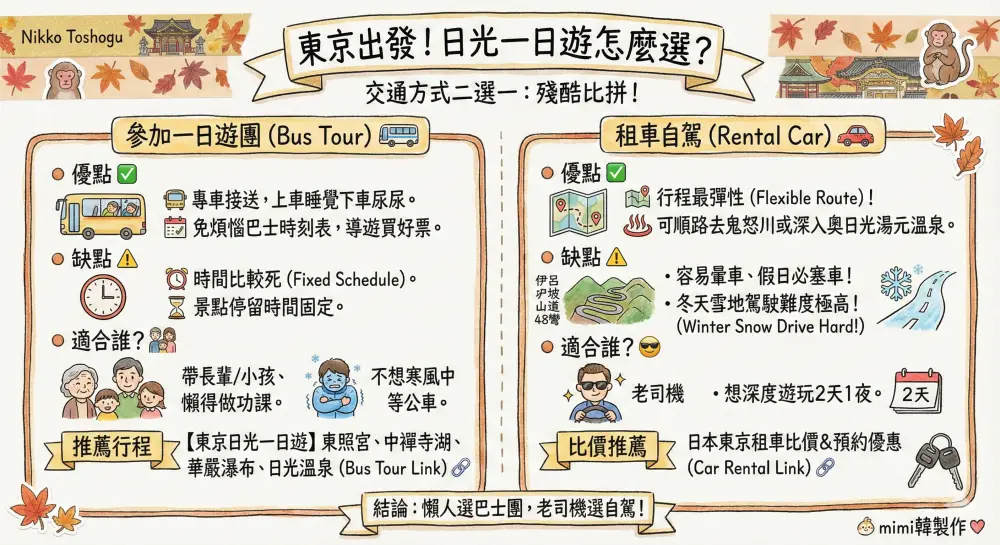 【2026日光一日遊】東京出發!東照宮/華嚴瀑布/溫泉攻略:跟團vs自駕真實分析