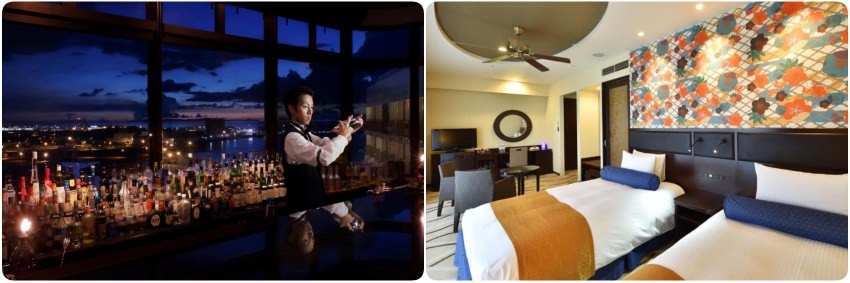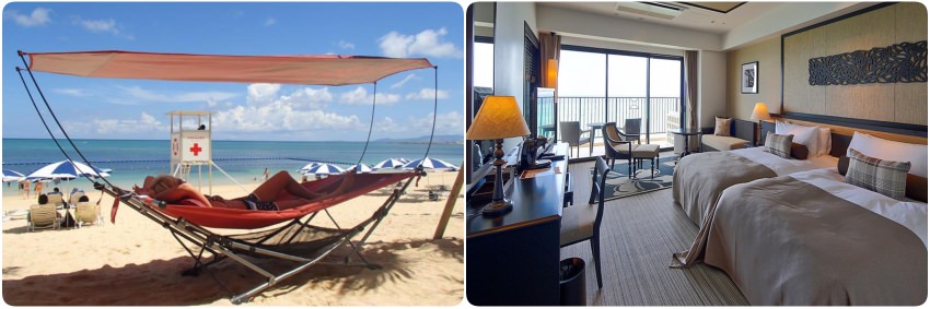 飯店在瀨長島上,風較大,被海水給包圍著。房間整體以簡約主義為主題,有室內風呂,可以面向海景泡溫泉。飯店的早餐,種類很多,食材新鮮。飯店下面有很出名的購物區,其設計有點像希臘的渡假村,當中大部分商店都是餐廳。在這些店的外邊欣賞日落,是十分寫意的體驗。