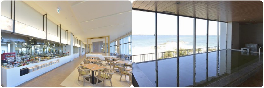 泡溫泉能看到全海景,還有看到飛機升降,溫泉方面,他們的溫泉有多款不同的選擇,男女湯溫泉會早晚互換,所以住一晚兩邊的溫泉都試得到,設備包括臥浴、站浴,甚至麥茶蒸氣房等,很齊全。