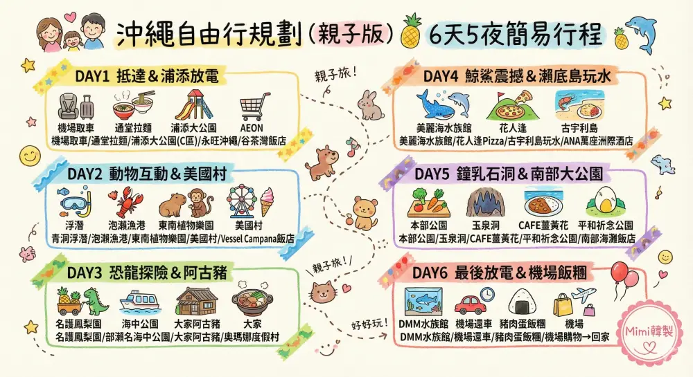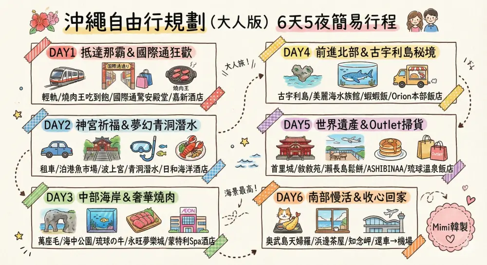 👩💻 作者經歷: Mimi韓(沖繩自駕旅遊 10+ 次,從兩人世界玩到一家四口的資深部落客),這篇攻略不只是行程清單,更包含了最新的租車現況、首里城重建進度,以及我實際走訪的避雷心得。文末附有200+景點 MapCode下載,請安心服用。