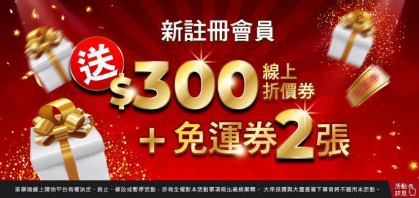 | —— | 新會員300折價券+免運券 | —— | 註冊獲得 |