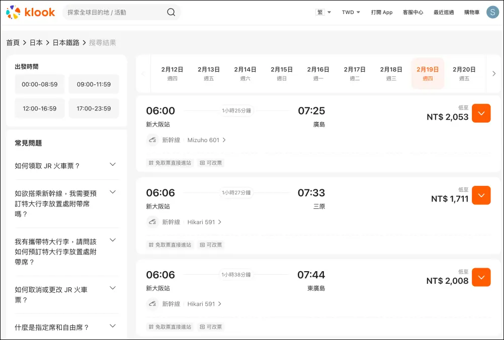 - 訂新幹線車票:Klook 預訂連結