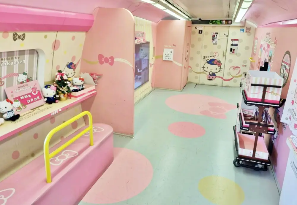 - 2號車廂 (KAWAII! ROOM): 裝飾得超級粉嫩,還有巨大的 Kitty 公仔可以合照。這節是自由席,建議早點去排隊。