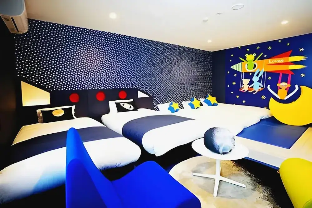 這間飯店也在櫻島站附近,雖然不是官方合作飯店,但價格非常親民,風格非常繽紛可愛,充滿了樂園的歡樂氣氛。飯店一出去就有7-ELEVEN,提供往返環球影城的接駁車(雖然很近,但有車搭就是爽),對於帶小孩又想省錢的家庭來說是不錯的備案。