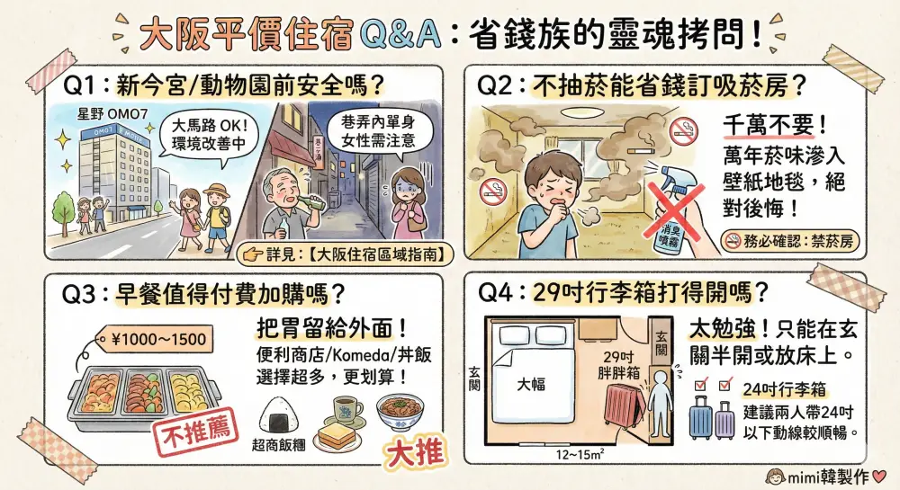 👉 發現預算其實還夠?想對自己好一點住寬敞一點? 請看這篇完整評比:【大阪住宿攻略】難波心齋橋梅田30間實測,房價區間與完整評比