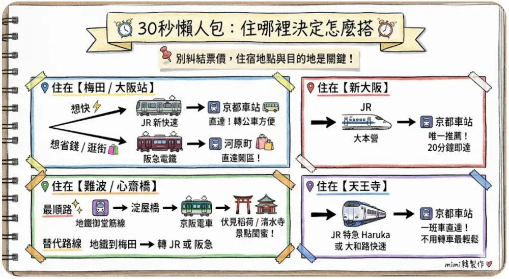 大阪與京都的交通選擇看似複雜,其實邏輯很簡單:「順路」比「便宜」更重要。