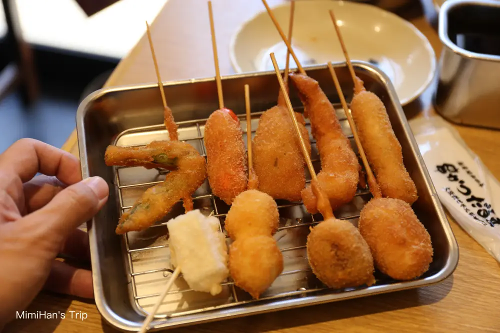 - 提醒注意: 吃串炸醬汁通常是「禁止二次沾醬 (二度漬け禁止)」,因為沾醬是裝在大盒子裡共用,所以不能咬一口又伸進去沾,但在後疫情時代,很多店家已改為擠壓式醬汁瓶囉!