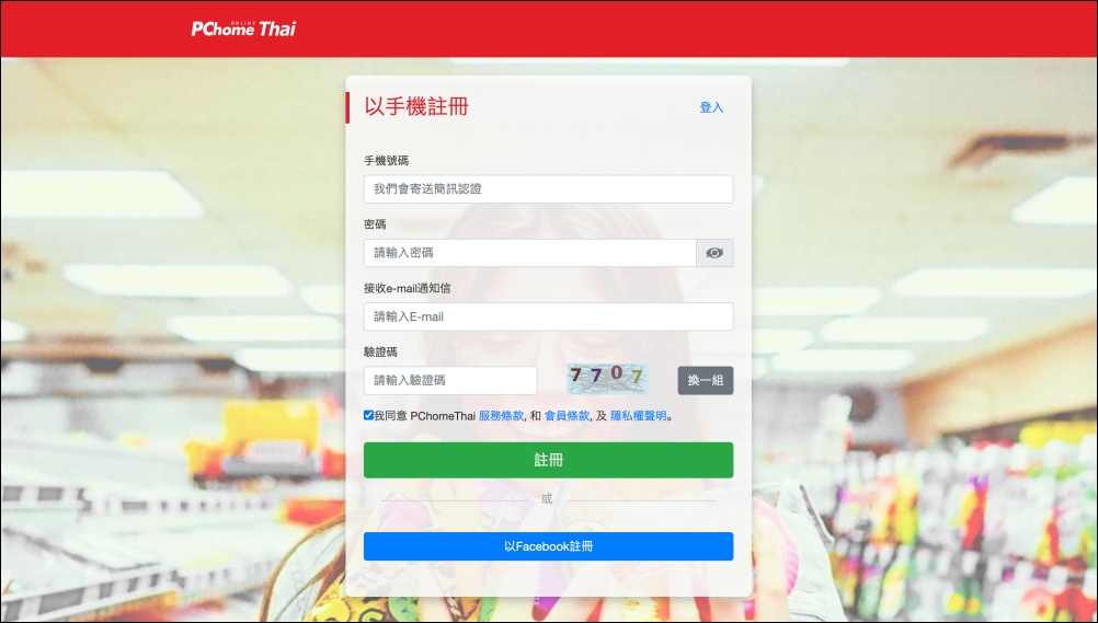 介面全部都中文,申請新帳號流程也很容易,從註冊到買東西完全沒有障礙。另外PChome Thai帳號與PChome購物網、露天網站共用,如果本來就有帳號就直接使用登入即可。