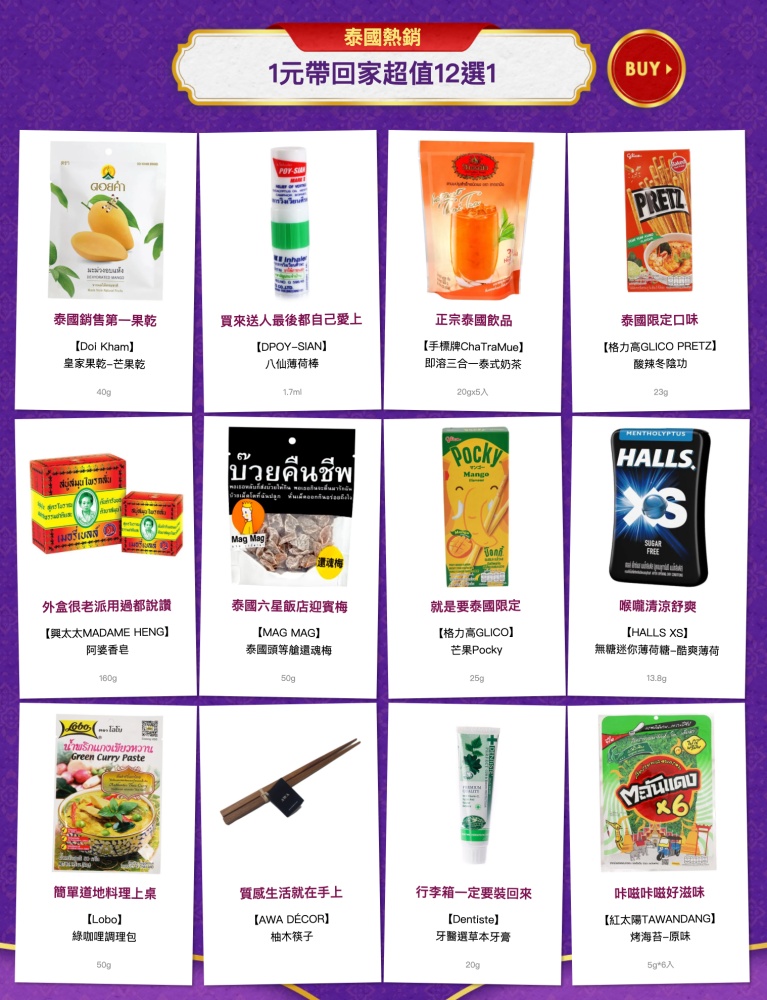 而且PChome Thai泰國購物不定時還會有各種優惠,像是超殺的1元限量商品,每款都是泰國必買的熱門好物,我這次也幸運搶到,看到只要1元不按一下對不起自己啊!