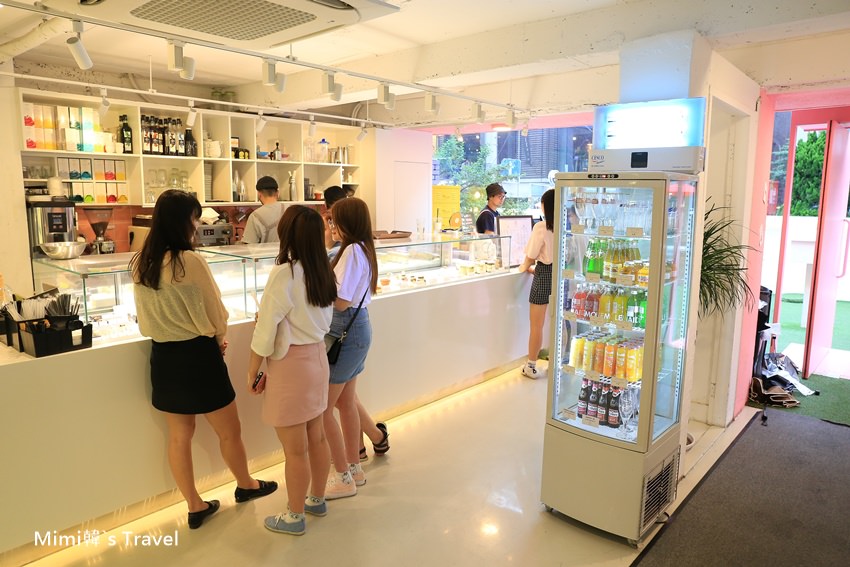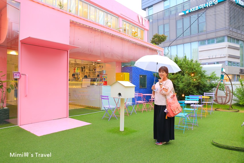 基本上我們這天也是刷到IG後才來找MENON(Pink House)咖啡店,說難找倒也是還好,反正這附近全部都是首爾弘大可以逛街的區域,到處都是充滿新意的店家,不過賣的衣服基本上都是給瘦子穿的,Mimi還是乖乖旁邊玩沙找咖啡店躲雨吧 😯