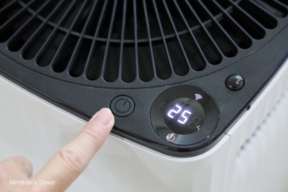 操作面板簡單到爆炸,只有開關⋯螢幕上則是輪流顯示目前風速/PM2.5數值;上下左右燈號顯示連線狀況/工作模式/兒童安全鎖等,日常使用大概只需按開關而已,其他細部都是透過手機APP來設定。