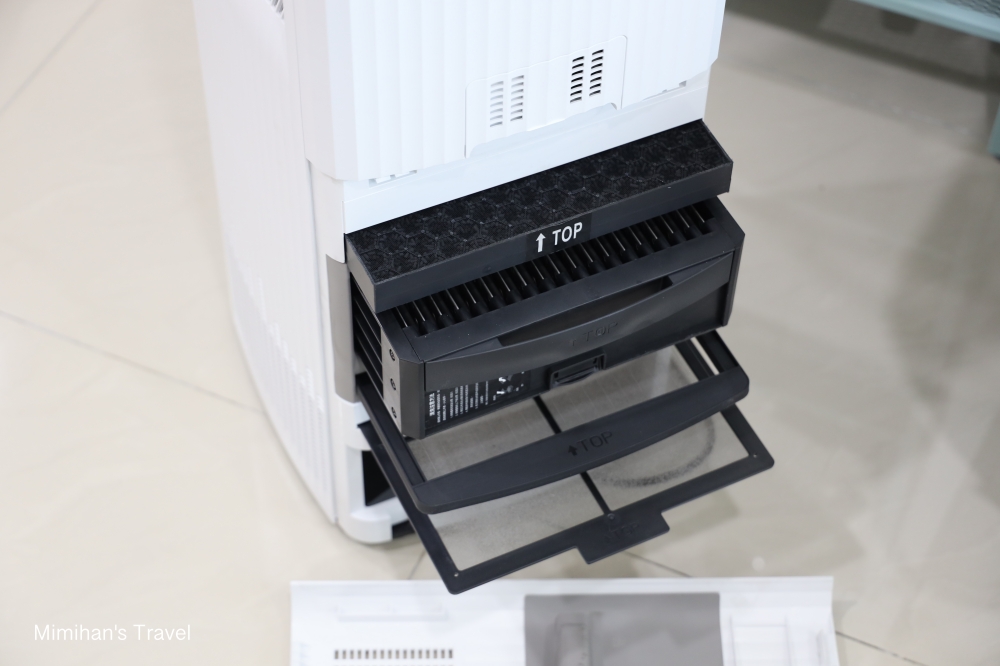 過濾系統的部分,POIEMA ONE採用獨家TPA雙極獵塵技術,因為進氣口是在機器下方,所以過濾的空氣是由下而上,分別經過初效濾網、發生極、收集極和催化網等四道關卡,濾網皆不需更換,只要定期清潔即可,可以省下很多濾網的費用。