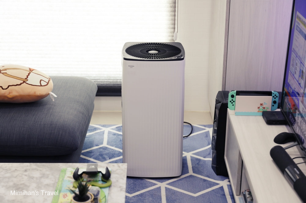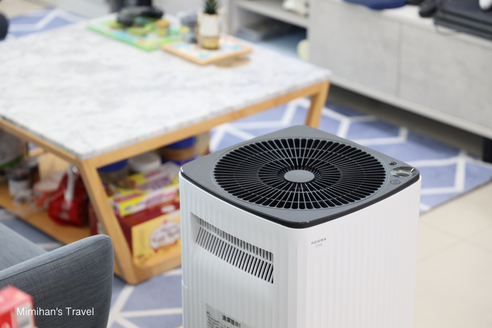 POIEMA ONE 是POIEMA系列空氣清淨機的新一代機型,白色搭配飾條的外觀設計整體蠻簡約好看,適用坪數16坪,最重要的CADR值最高來到445 m3/h,平均大約12分鐘可以過濾10坪空間,以同等級的機種來說算是相當強悍,我家客廳和工作區只要一台就足夠。