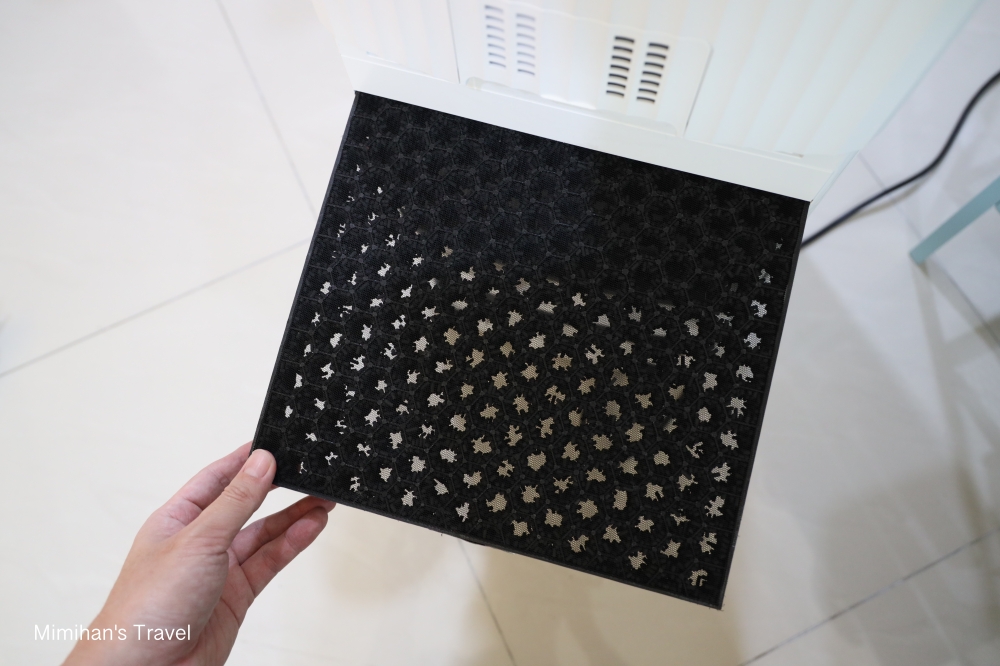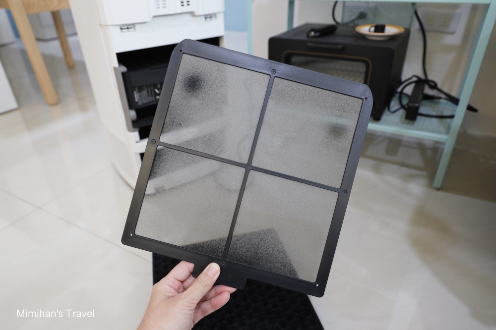 POIEMA ONE 第一道的初效濾網,可以直接水洗,主要就是過濾棉絮、灰塵等較大的髒污,我大概用了大概一個多月就卡不少髒東西,一段時間拿出來沖一沖就乾淨惹!