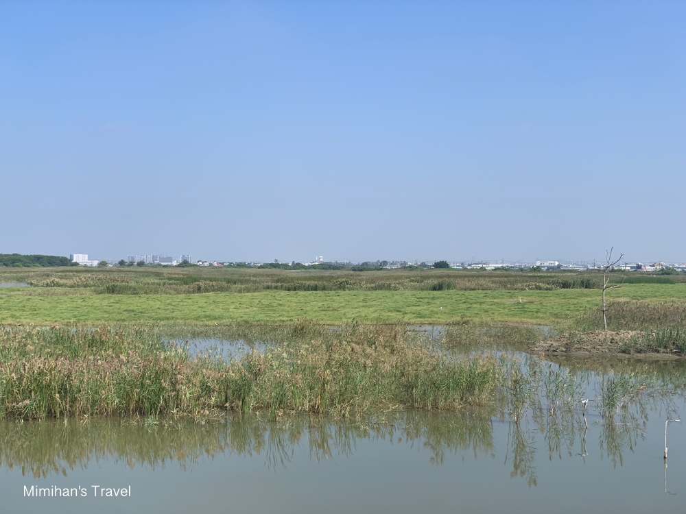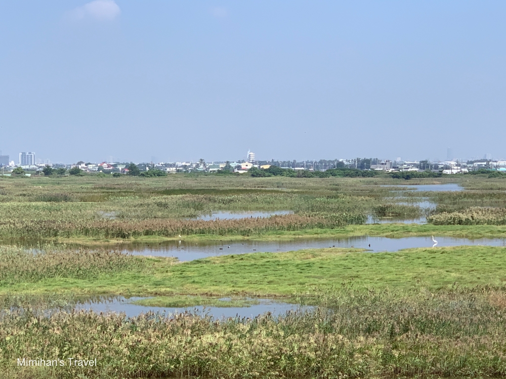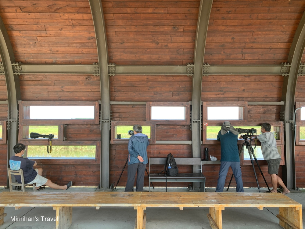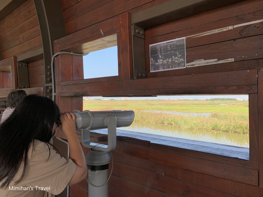 我們來的時候是10月,肉眼就可以看到不少水鳥在濕地裡,此時聽來賞鳥的大哥說已經有幾隻黑面琵鷺抵達,不過躲在比較遠的草叢裡要等飛出來才能看到。聊天過程一位大哥建議我們沒有望遠鏡大砲想看黑琵可以2~3月再來,還拿出手機影片給我們看,整群黑琵就在景觀台前面不到10公尺的地方散步,生態也太厲害了吧!