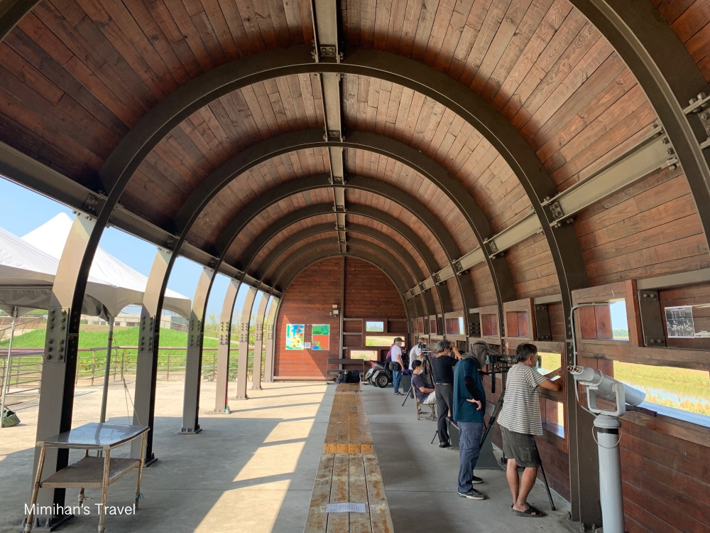 而且不止黑面琵鷺,這片茄萣濕地還生活著許多雁鴨、水鳥和其他候鳥,例如唐白鷺、東方白鸛、赤腹鷹、灰面鷲、魚鷹⋯有記錄就超過110種,喜歡賞鳥拍鳥的話絕對值得收藏。現場還設置了免費的望遠鏡可以使用,不過鏡片有點模糊,老公說他明年也想拿家裡的長焦段來拍拍看。