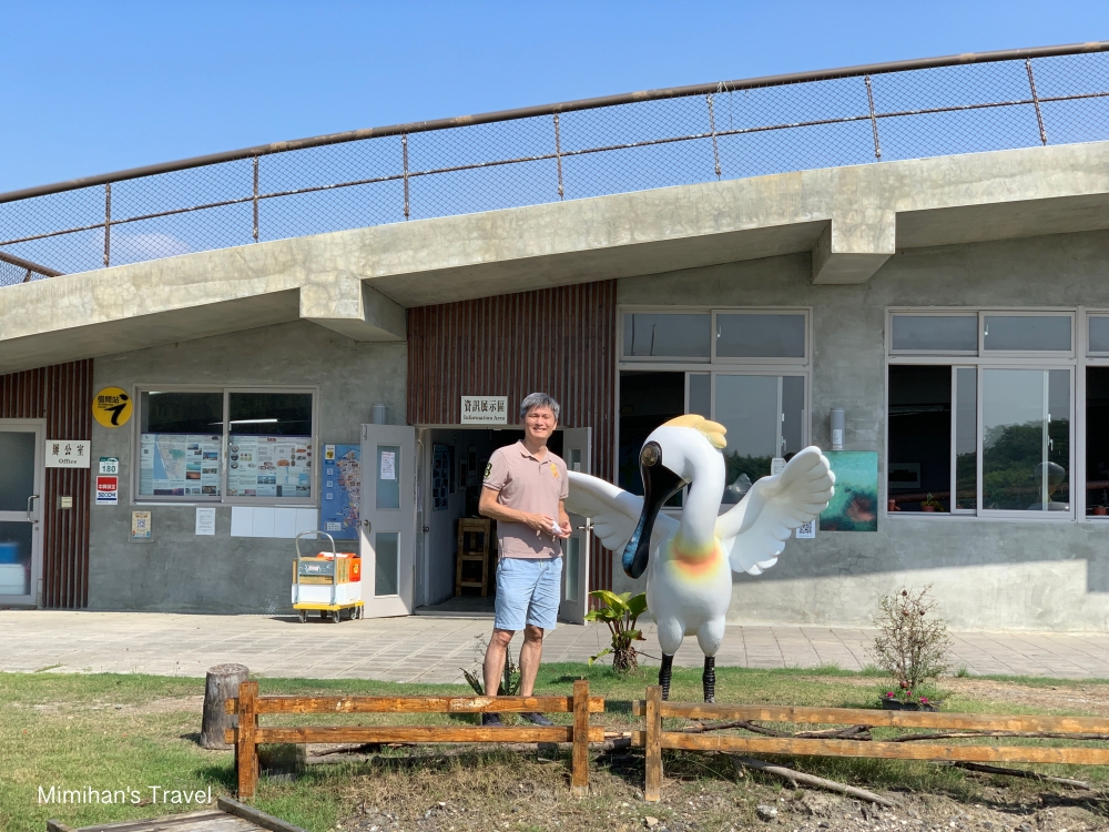 景觀台旁邊資訊展示區和旅客服務中心,能和門口兩隻可愛的黑琵公仔合影,館內可以拿取一些關於茄萣濕地的簡介和周邊景點美食的資訊,現場也有廁所和哺乳室。