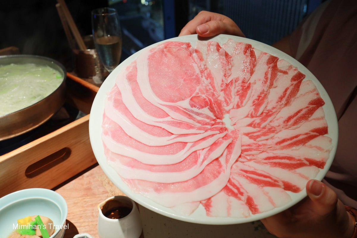 而其中最精華的自然是這盤豬肉啦!店家使用相當有名的宮崎霧島黑豬,看起來應該是有兩種部位,肉質夠好簡單涮一涮就可以入口。