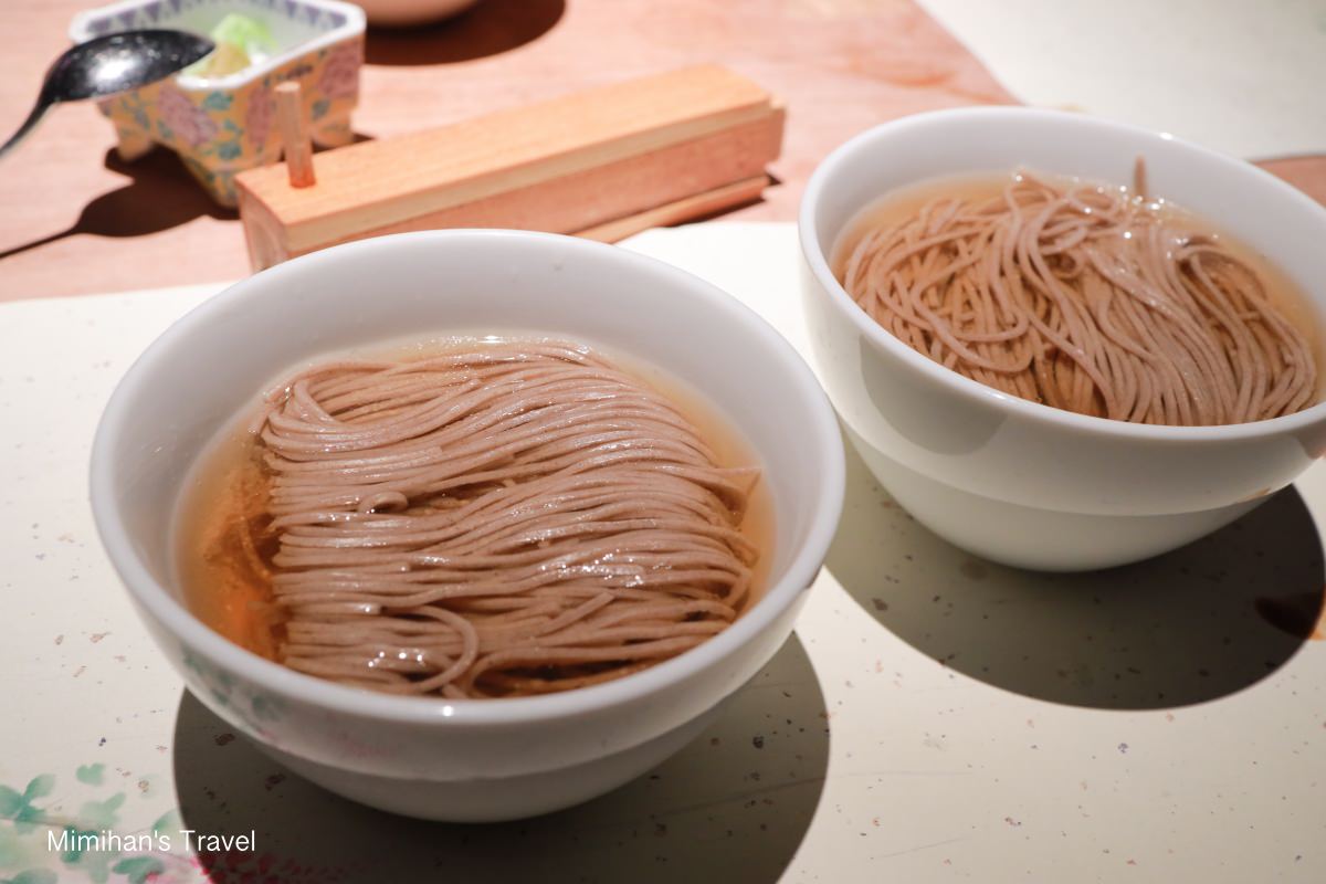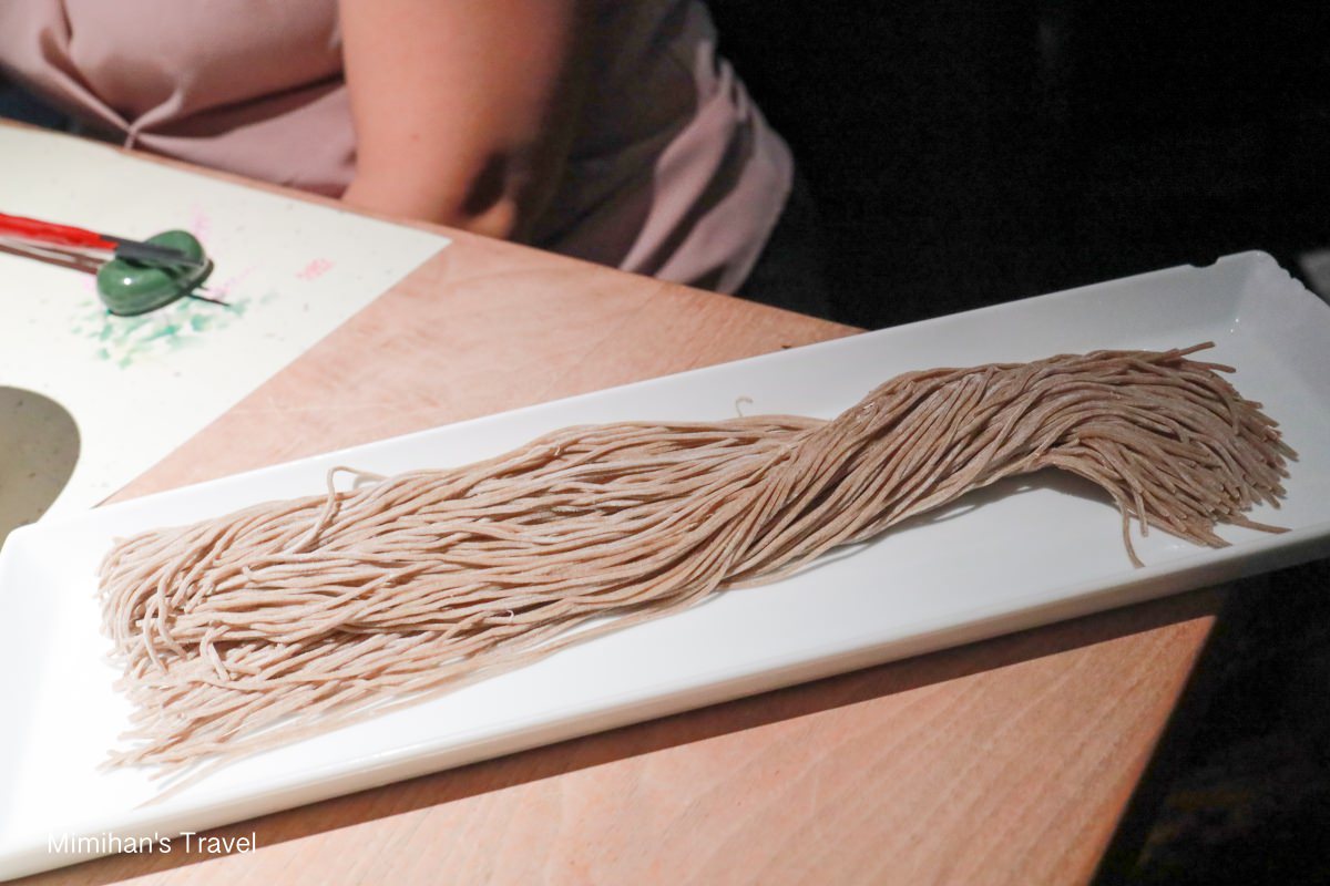 日本人的米飯或是麵都是放在最後吃的,服務人員把蕎麥麵給我們拍個照之後,就直接拿到旁邊現場煮,說真的當時幾乎已經完全吃不下惹,但看在煮麵是帥哥的面子上當然還是要把他吃乾抹淨啦 😆