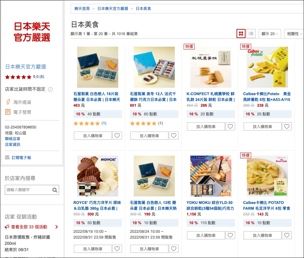 像日本必買小朋友很愛的Calbee薯條三兄弟,我在台灣看一盒要398元,日本樂天官方嚴選只賣300元,更別提還有很多只能透過代購的例如白色戀人、YOKU MOKU等東西。