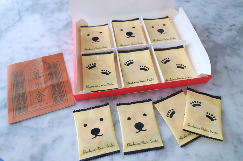 只能說日本在做這類伴手禮的包裝好厲害,像這個菓か舎白熊奶油仙貝也是好可愛,當時在選禮品時看到外觀就想買,裡面是一塊塊印上熊表情的奶油仙貝,送給家裡有小小孩的朋友超合適。