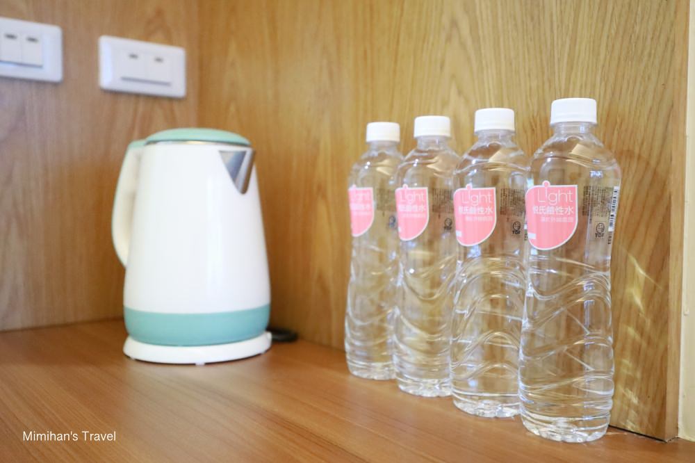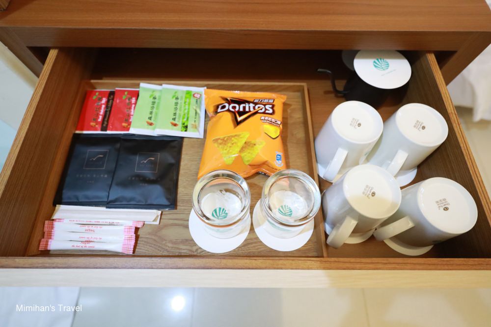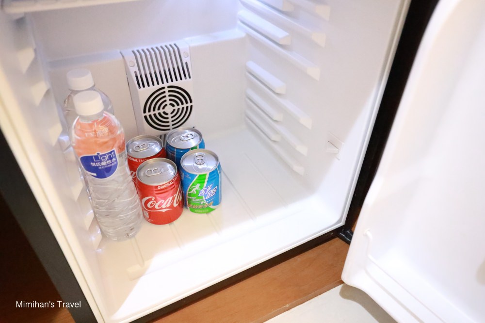Mini bar 準備了礦泉水、餅乾、濾掛咖啡、茶包、快煮壺等備品,冰箱裡飲料是免費使用。