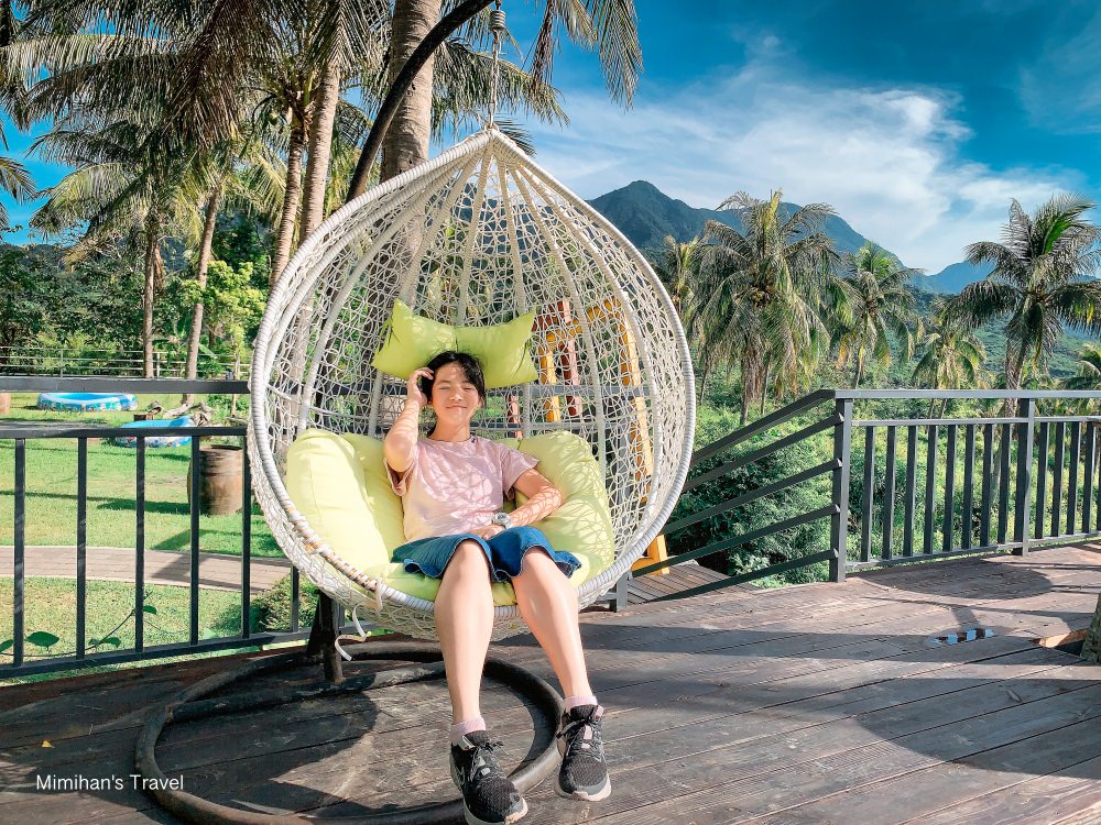 草地上擺放了很多組躺椅、吊椅,傍晚或清晨走到戶外欣賞台東的好山好水,拍照效果很好,也難怪吸引不少網美們入住打卡,而且富杉晴民宿晚上的光害也不多可以看到滿天星斗,運氣好的話還能看到許願流星唷~