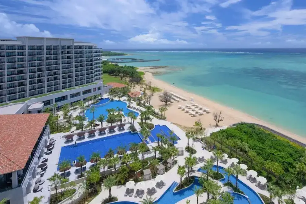 飯店離那霸機場只要短短 20 分鐘車程,卻有一種讓人瞬間切換到「海島度假模式」的強大魔力。雖然飯店周邊沒有走路能到的便利商店,但相信我,踏進大廳的那一刻起,你根本不會想離開。除了那片踩起來像蜜粉一樣細緻的純白私人沙灘,最狂的是它擁有全沖繩規模最大的 6 大主題泳池,甚至還有一條讓小朋友玩到忘記時間的漂漂河,不管是親子旅遊或者情侶來玩入住都相當適合。今天就來深度開箱這間能讓你「不出門也能完美度假」的終極海島指標。