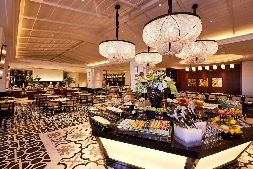 如果你這趟旅行主打一個「財富自由的鬆弛感」,預算夠請直接直上南翼的房型。 這裡的房間從 42 平方公尺起跳,空間感更奢華。而且最重要的是入住尊爵俱樂部以上的房型,可以進入專屬的 行政酒廊,從專屬早餐到晚上的雞尾酒時光,完全不用去樓下跟人擠。 如果狠下心訂了套房等級,還能解鎖中央泳池區的 VIP 泳池酒吧 Oasis,一邊泡水一邊喝著免費的香檳,那種尊榮感真的會讓人上癮。