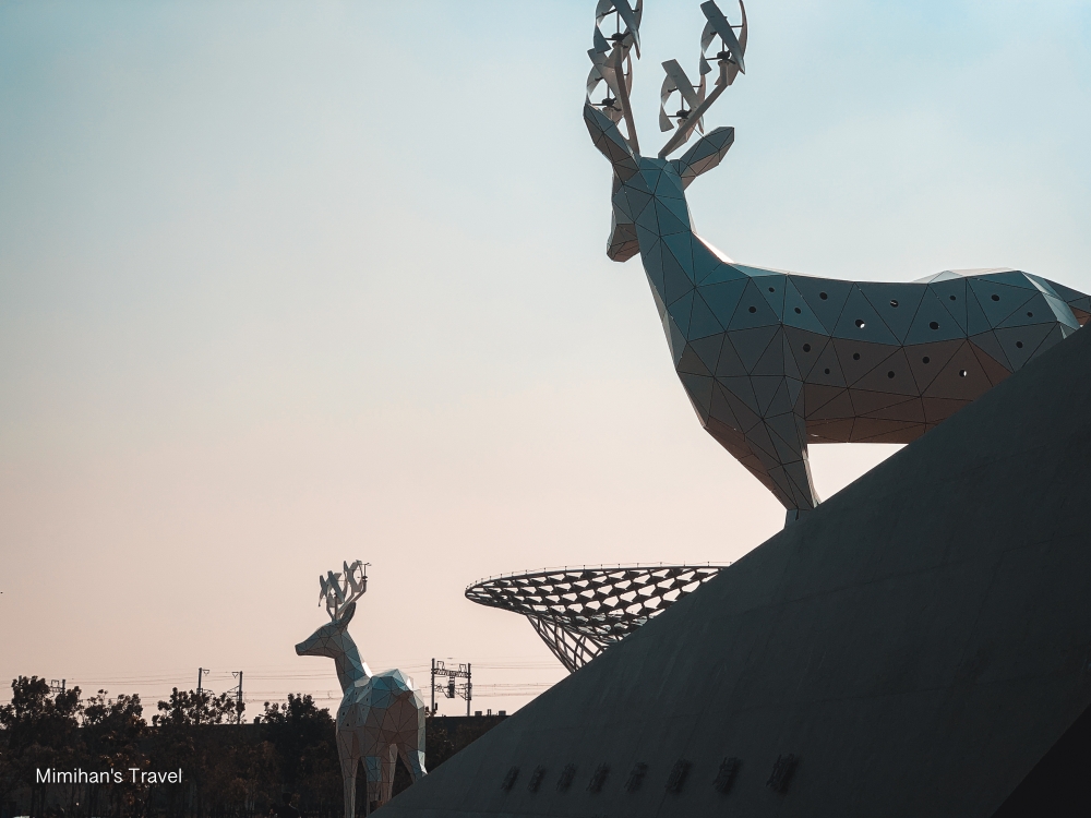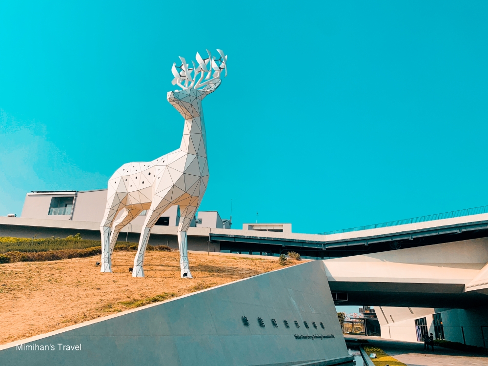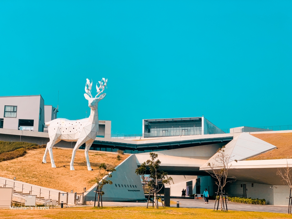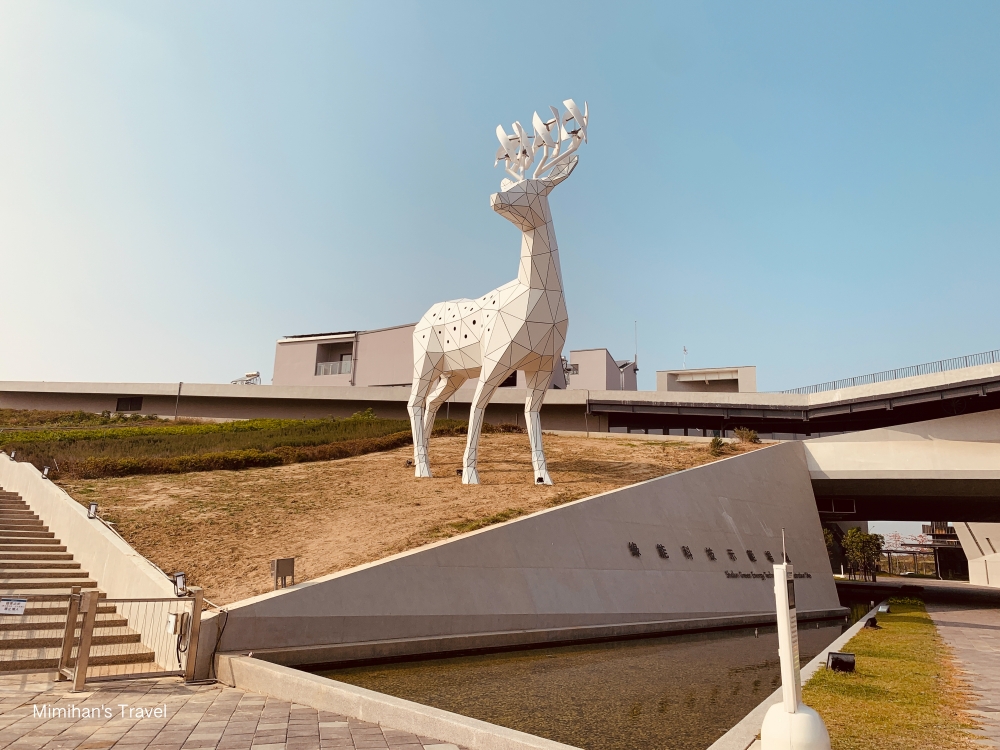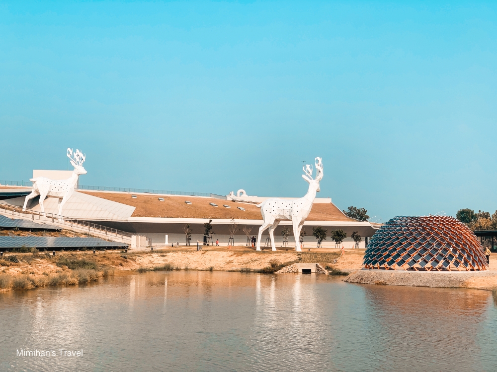 綠能科技示範場域交通緊鄰台南高鐵站、台鐵沙崙站,旁邊是建設中的台南三井outlet,未來相信肯定是房價大漲很有看頭。目前外觀完成,但館內還在細部規劃無法參觀,旅人們只能先在外面和大白鹿拍拍照,然後廁所有開放不用擔心內急,開車可以停在路邊白線。
