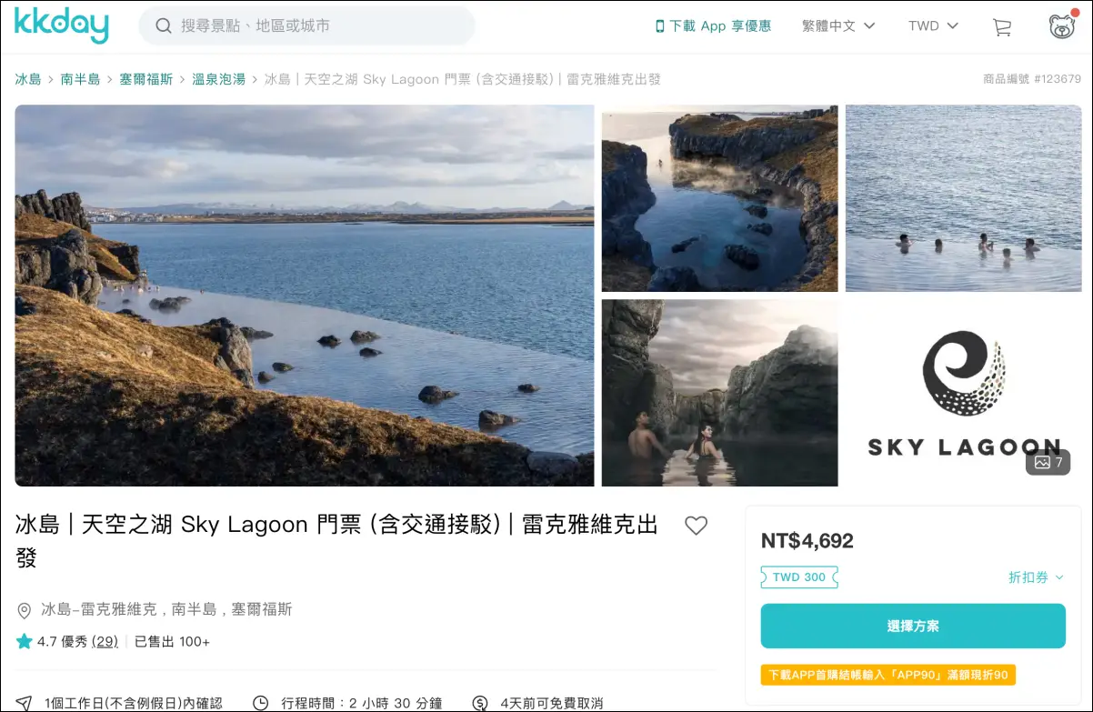 如果你和我們一樣是計畫離開雷克雅維克再租車,那推薦直接在出發前先買好 KKday 上的【冰島 | 天空之湖 Sky Lagoon 門票 (含交通接駁) | 雷克雅維克出發】套票。這個方案直接包含了天空之湖最熱門的 Saman 門票跟市區往返接駁車,只要提早到市區指定的 BSI 巴士總站或飯店站牌等車,上車後就能無腦直達門口,泡完再舒舒服服地坐車回市區吃晚餐,絕對是把時間和體力效益最大化的聰明選擇。