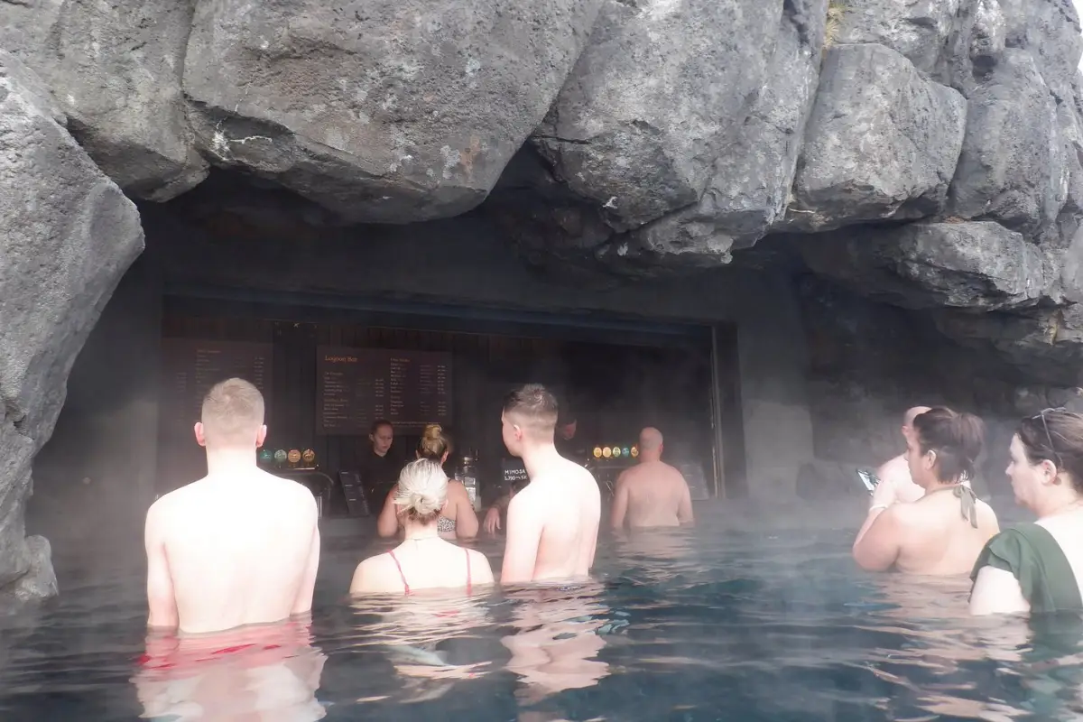 這兩年天空之湖的知名度爆增,如果選在下午或日落時分過來,更衣室和水上酒吧的排隊人潮真的會讓人有點煩躁。無邊際池畔最適合拍照的角落,通常也擠滿了拿著防水袋找角度的遊客,空間感受上確實比剛開幕時擁擠許多。如果是想追求徹底寧靜,強烈建議選擇早上開門的第一個場次,不僅水質最乾淨,還能避開喧囂,獨享那片不被打擾的北大西洋海景與冷冽的空氣。