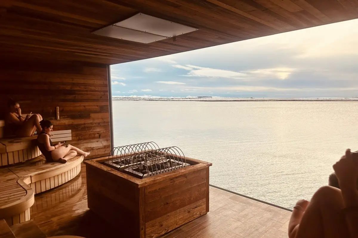 第一步先在潟湖裡把身體泡暖;第二步是挑戰極限的冷水池,跳下去那瞬間真的會靈魂出竅;第三步是走進擁有超大玻璃窗的無邊際海景桑拿房,這絕對是整個溫泉最夢幻的角落;第四步穿過冷霧降溫;第五步是拿他們特製的海鹽身體磨砂膏去角質;第六步進去蒸氣室讓毛孔吸收精華;最後一步淋浴沖洗乾淨,再回到溫泉池裡。